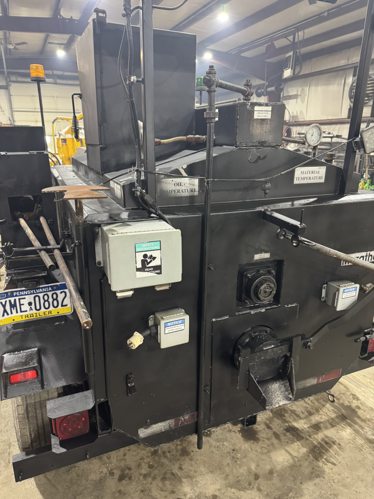 1100+ Hours. Very Good Condition. Annually Inspected and Maintained Including Regular Heat Transfer Oil Changes. GVWR under 10000 lbs (Can Be Towed In PA With Class C License) This Particular Unit Was Used Exclusively for Demonstrations and Pilot Projects For Gray Mastic. Includes a Diesel Burner, Kohler Diesel Engine, Removable Heated Chute, Hand Tools, Arrow Board, Fire Extinguisher, Propane Hand Torch, Propane Powered Tool Heater Chamber, and A Heated Bucket Cabinet. Machine located in Lawrence County PA